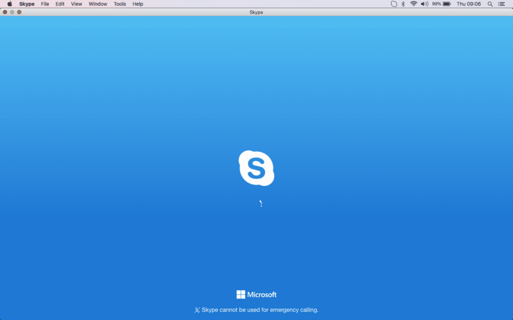 Επιλέγω Skype από τη γραμμή μενού του Mac.